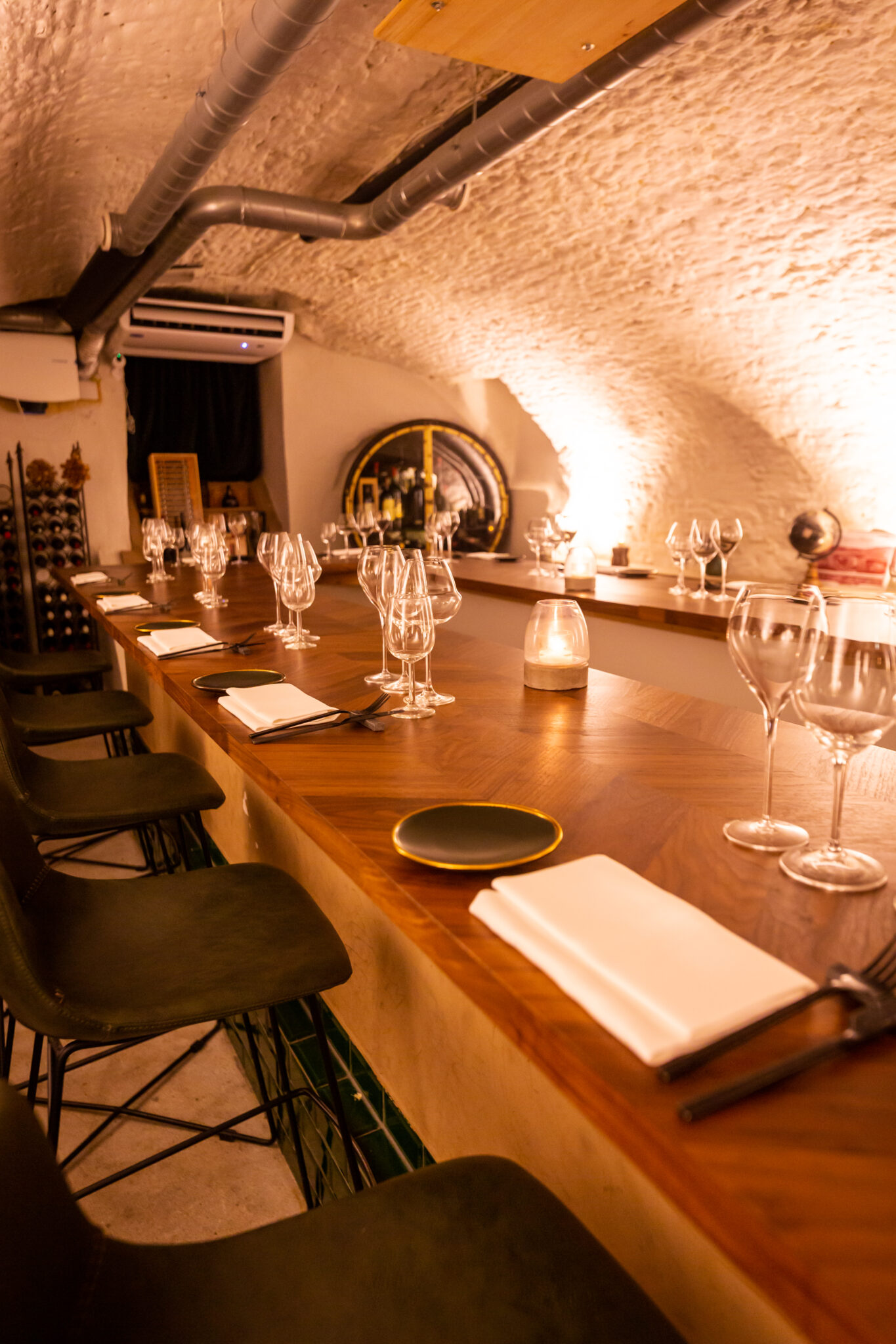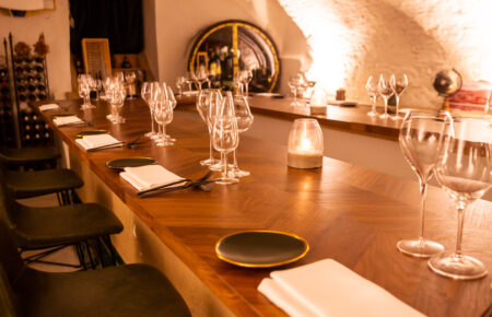 Onder het historische pand bevindt zich La Pinotheque, een sfeervolle gewelvenkelder die authenticiteit combineert met een intieme sfeer. Deze ruimte fungeert als locatie voor uiteenlopende activiteiten, zoals wijnproeverijen, WSET-opleidingen en culinaire wijnmakersdiners. Of u nu kiest voor een uitgebreid diner, een high wine of een zakelijke borrel, de sommelier adviseert u gericht over de uitgebreide wijnkaart. Het team streeft ernaar om u bij ieder bezoek een kwalitatieve indruk te geven van de verfijnde gastronomie die het restaurant kenmerkt.
